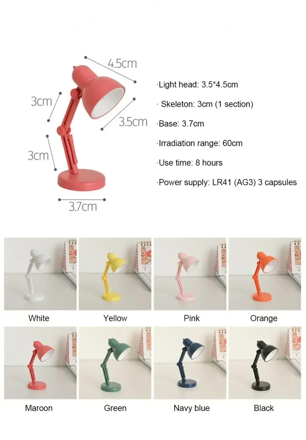 ?Mini, easy to carry?You can use it for reading books or writing something in the middle of the night when you don't want to disturb others with the big room light. Small and flexible, it is easy to carry, especially suitable for travel and camping.